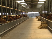 公司直屬優(yōu)質肉牛育肥場,位于平度市田莊鎮(zhèn)宮東村南1公里處,始建于2009年3月,設計存欄3000頭,現(xiàn)存欄1000余頭,占地100多畝,現(xiàn)有建筑面,18600平方米。公司擁有一批具有養(yǎng)牛經驗的管理、技術、飼養(yǎng)人員。聘請了全國養(yǎng)牛方面的知名專家作為技術顧問。養(yǎng)牛場現(xiàn)有職工23人,具有初、中級以上技術等級和從事養(yǎng)牛5年以上的工人占70%以上,有管理和技術人員5人,其中畜牧獸醫(yī)專業(yè)中、高級以上職稱3人。本公司通過食品安全認證、質量體系、無公害認證,是國家地理標志保護產品。是肉牛定點屠宰單位。被評為“島城市民最喜愛的農產品品牌”、第一批“平度好食材”。本公司肉牛養(yǎng)殖場喂牛所用飼料全部采用自己配制的飼料,主要使用大豆、玉米、麩皮,大豆經炒料機炒熟后再分碎飼喂,無任何添加劑。公司有火鍋料理店6處,安排從業(yè)人員80多人。公司擁有年屠宰加工1萬頭肉牛的屠宰生產線,嚴格執(zhí)行國家GB/T17238-2008鮮凍牛肉分割標準,并按伊斯蘭清真屠宰要求進行屠宰分割以及排酸嫩化處理。我公司生產的牛柳、西冷、肉眼、上腦、S腹肉等產品主要銷往上海,北京,南京,濟南,青島,煙臺等大中城市的四、五星級酒店,用作西餐、韓餐、日餐、中餐等深受用戶青睞。